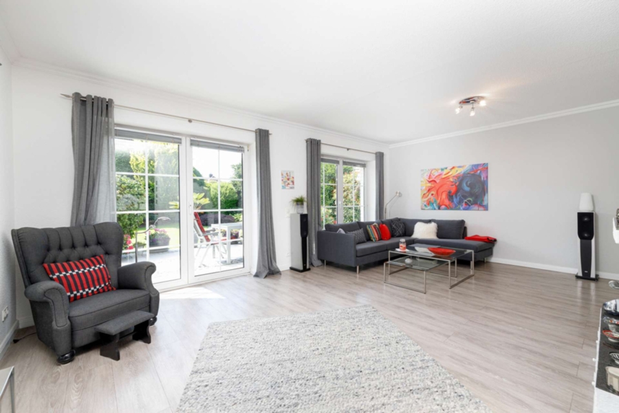 - Großzügiger, heller Wohnbereich mit bodentiefen Fenstern (viel Licht)