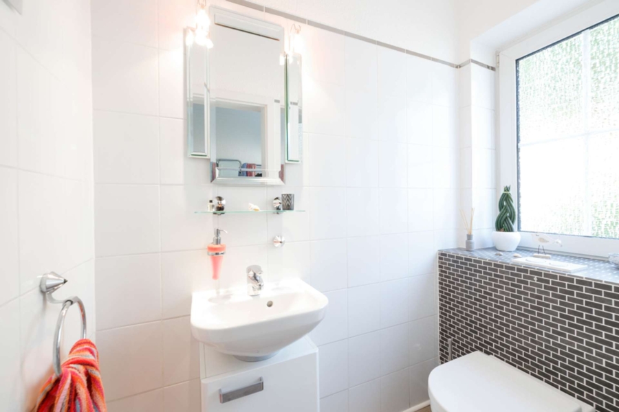 - Das Vollbad im Dachgeschoss ist vollständig saniert worden