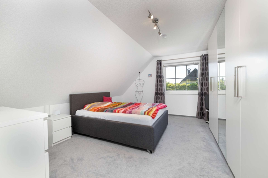 Im Dachgeschoss finden Sie drei gut geschnittene Zimmer, die individuell genutzt werden können. Ob als Schlafzimmer, Büro oder Hobbyraum – hier haben Sie vielfältige Möglichkeiten, um Ihren Bedürfnissen gerecht zu werden. Ein großes Vollbad mit einer übergroßen Dusche und Badewanne vervollständigt diese Etage und bietet Ihnen einen Ort der Entspannung und Erholung.