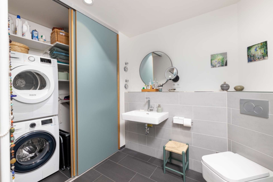 - Es ist ein Duschbad inkl. Waschmaschinenanschluss vorhanden